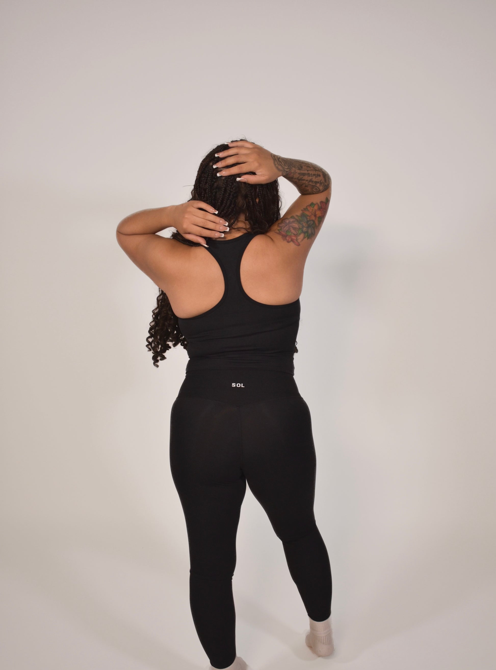 The Noir luxe black leggings achieves an amazing balance between performance, stretch and comfort. We recommend sizing up.